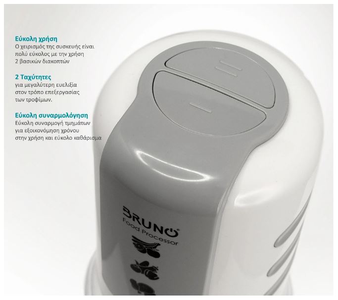 BRUNO πολυκόπτης BRN-0082, 2 ταχύτητες, 400W, 500ml, 4 λεπίδες, λευκός