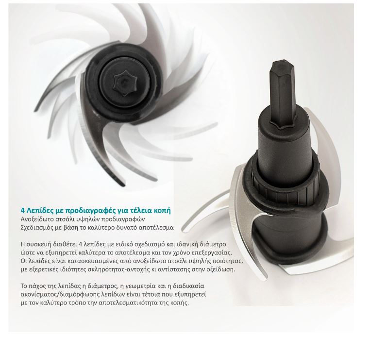 -4 λεπίδες κατασκευασμένες από ανοξείδωτο ατσάλι υψηλής αντοχής