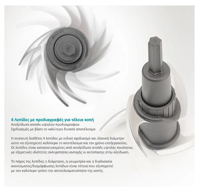-4 λεπίδες κατασκευασμένες από ανοξείδωτο ατσάλι υψηλής αντοχής
